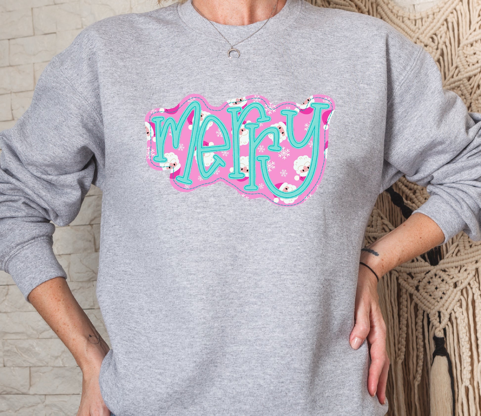 Christmas Merry Faux Appliqué Graphic Crew Sweatshirt
