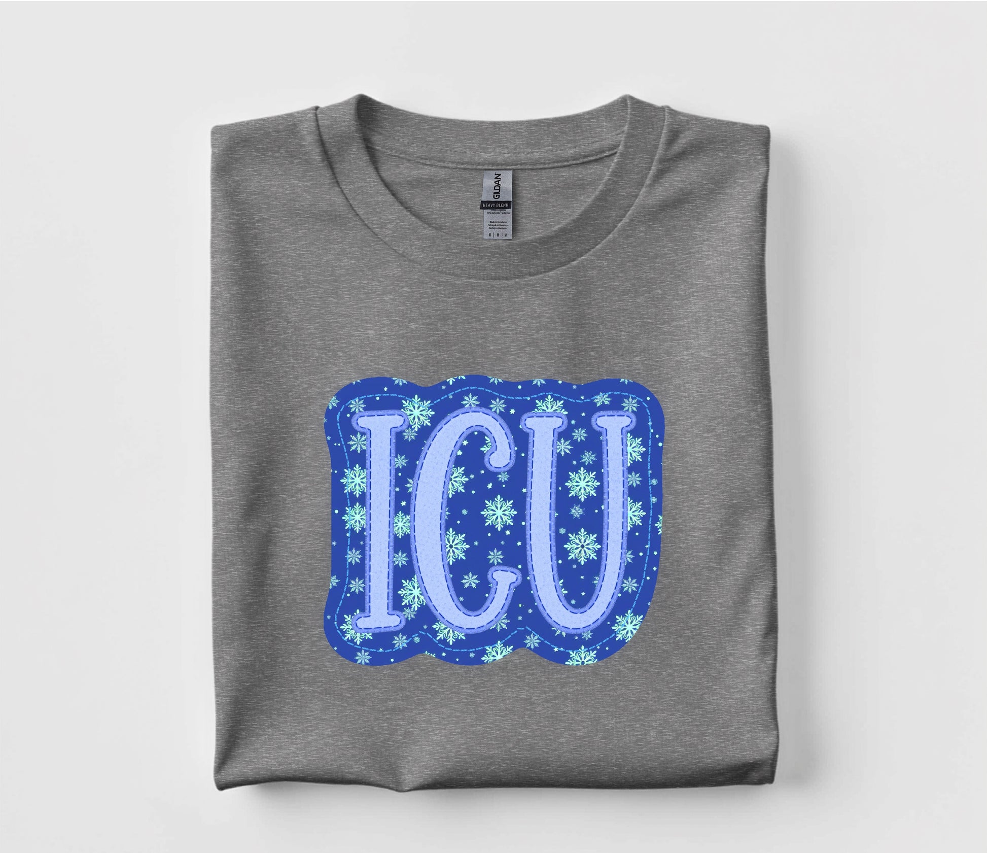 Holiday Snow Christmas ICU Faux Appliqué Graphic T Shirt