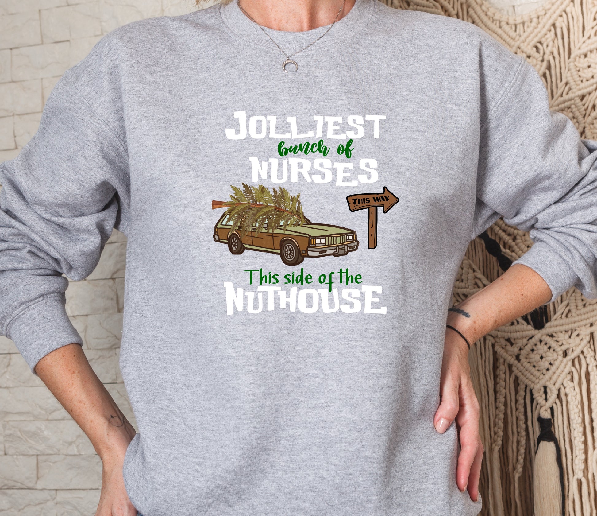 Jolliest Bunch Of Nurses Christmas Crew Sweatshirt