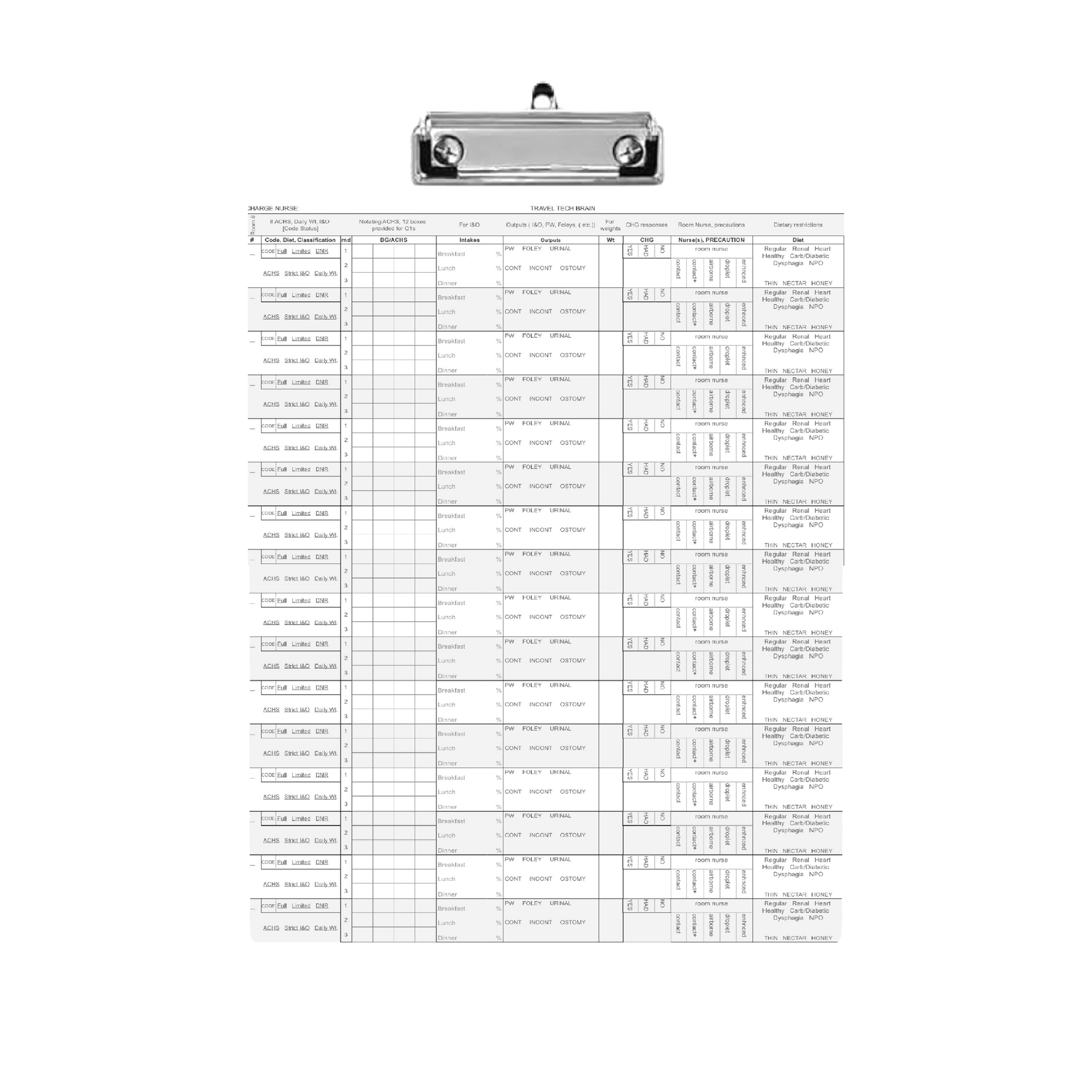 ShiftBoard Travel Brain Report Clipboard 16 Patient PCT Handoff